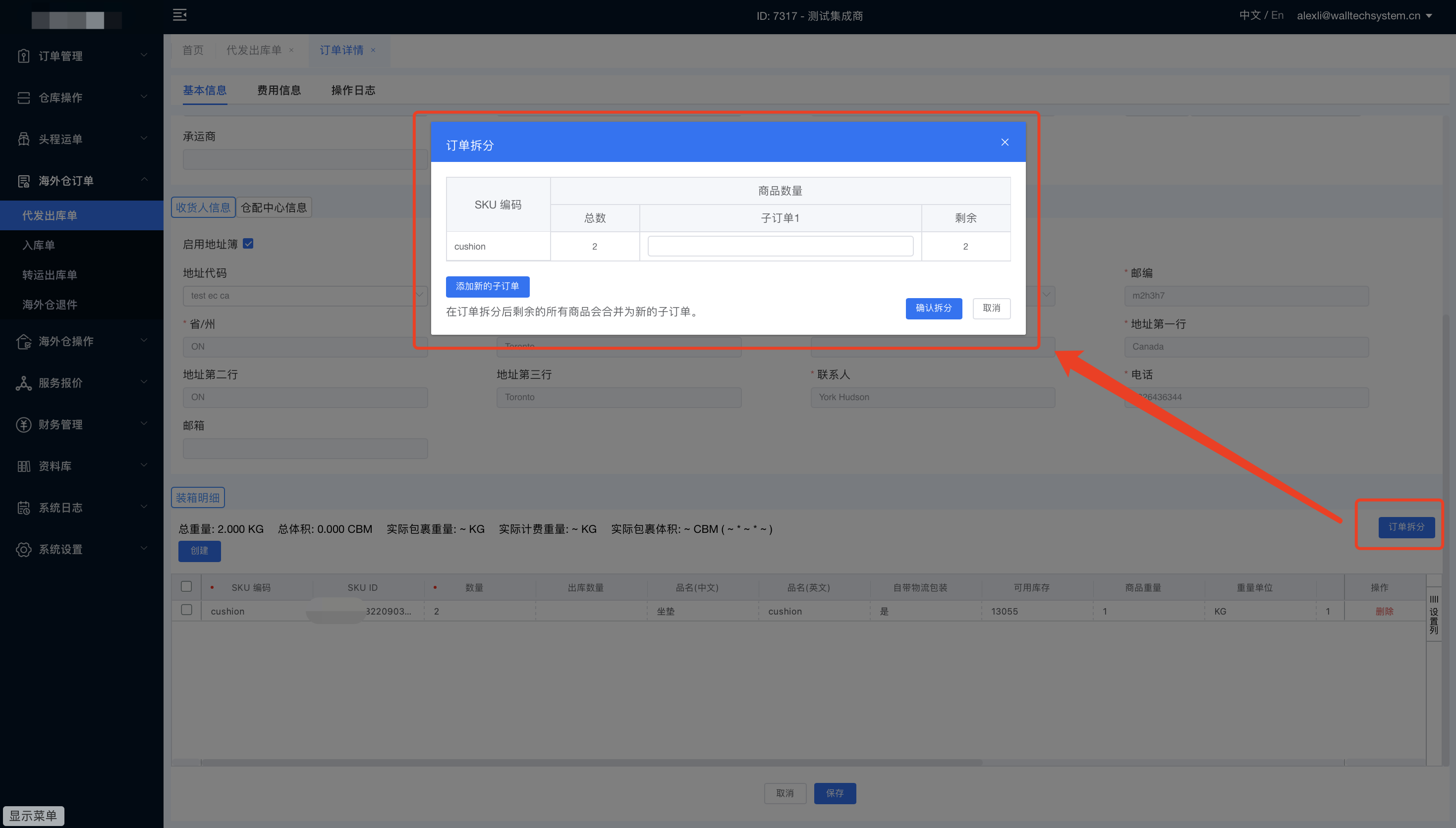 拆单支持“已创建”、“下单异常”状态订单。拆分出的订单,会在原来的参考后自动增加后缀-1、-2、-3等以此类推,注意:如果拆单的单号已有,则会跳过已有单号,比如已有订单参考号order001-1和order001,对order001拆单时,拆出的订单单号会从order001-2开始。