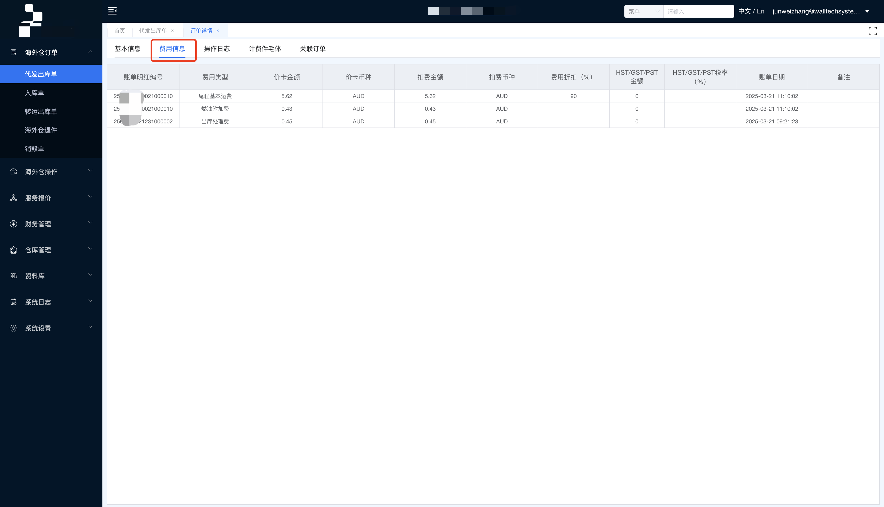 点击进入订单详情,在以下TAB页查看订单相关的费用