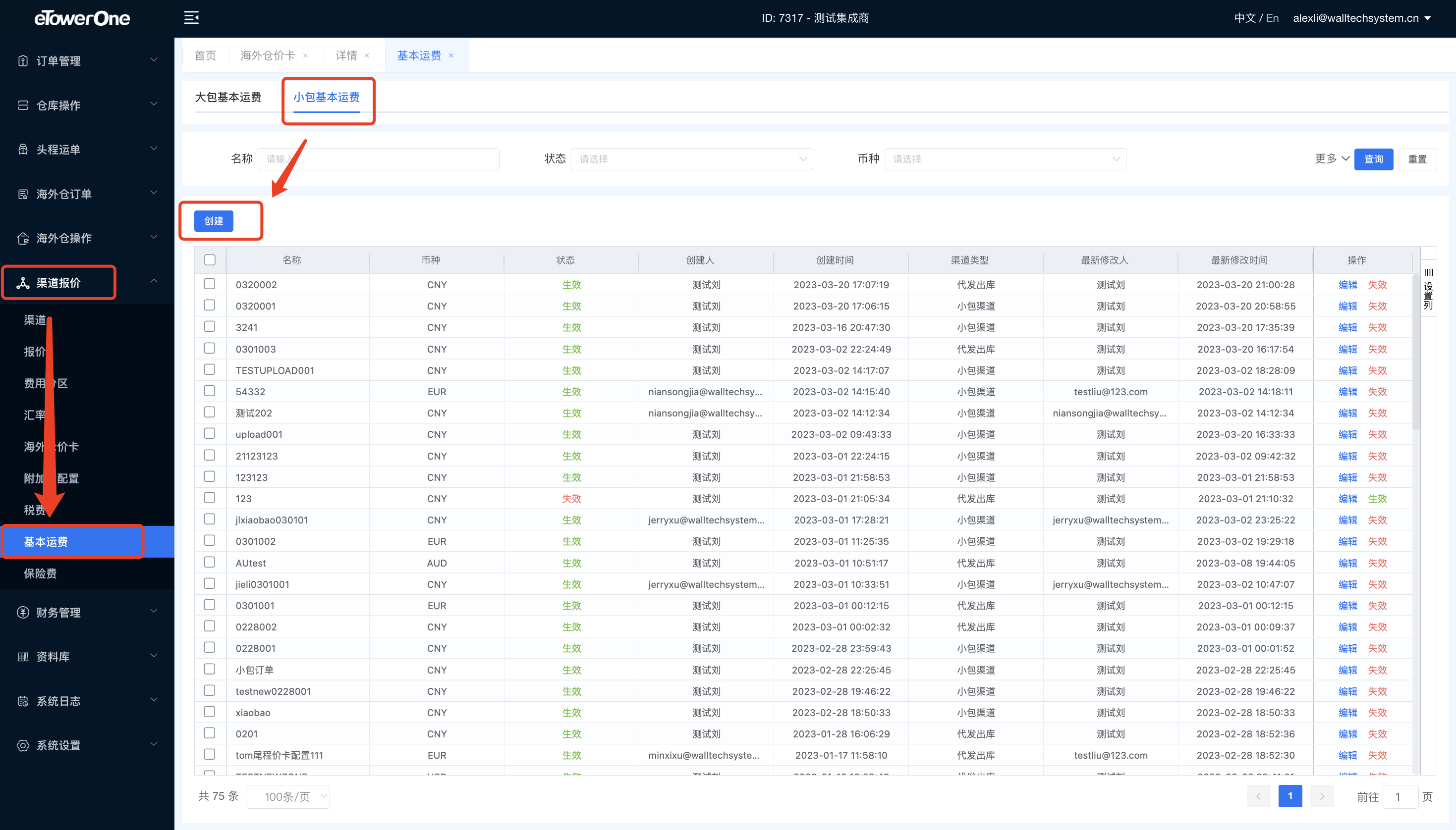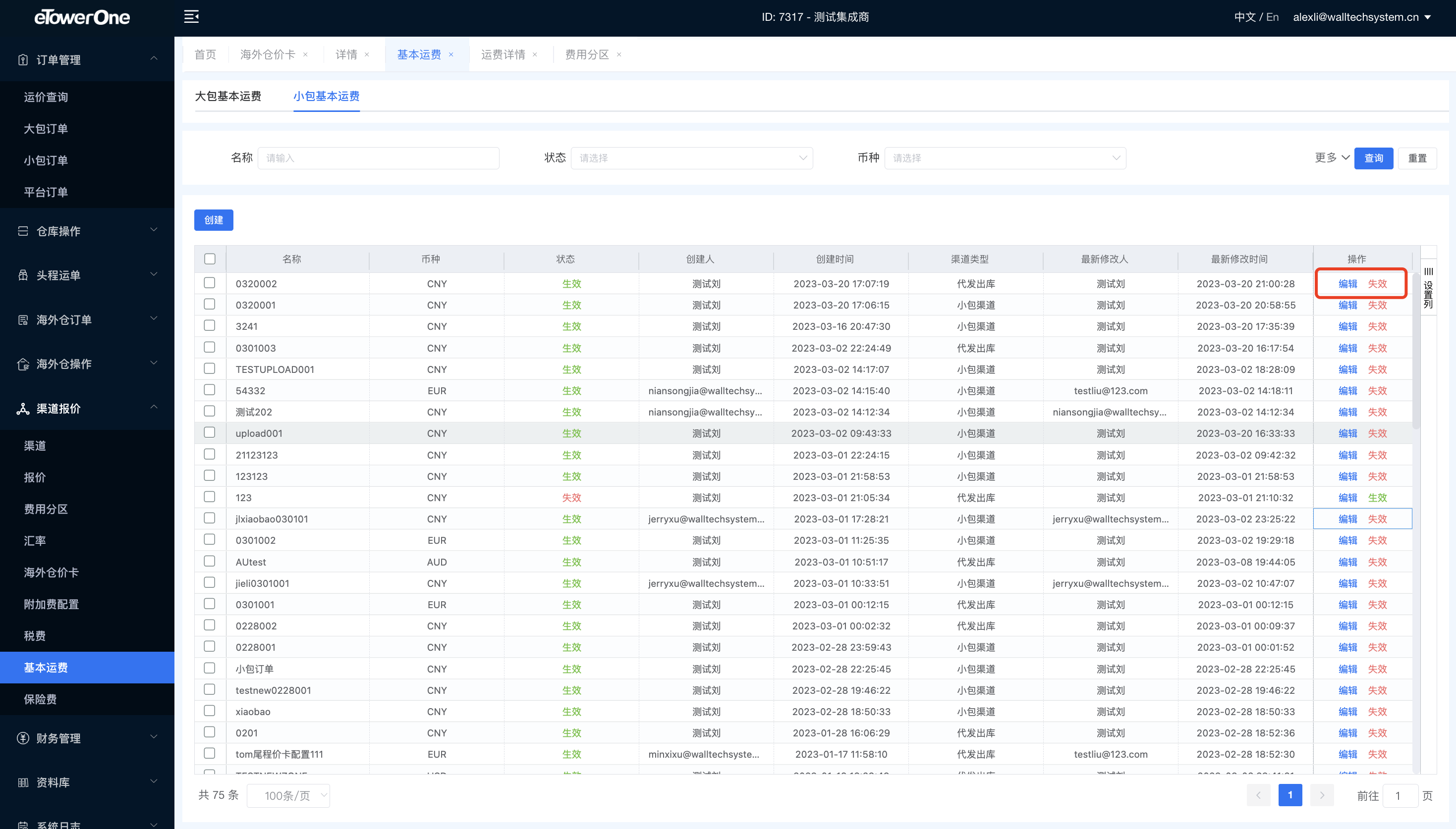 创建成功的价卡将展示在价卡列表,可进行编辑和生效/失效。注意:已经被使用的价卡不允许更改为失效