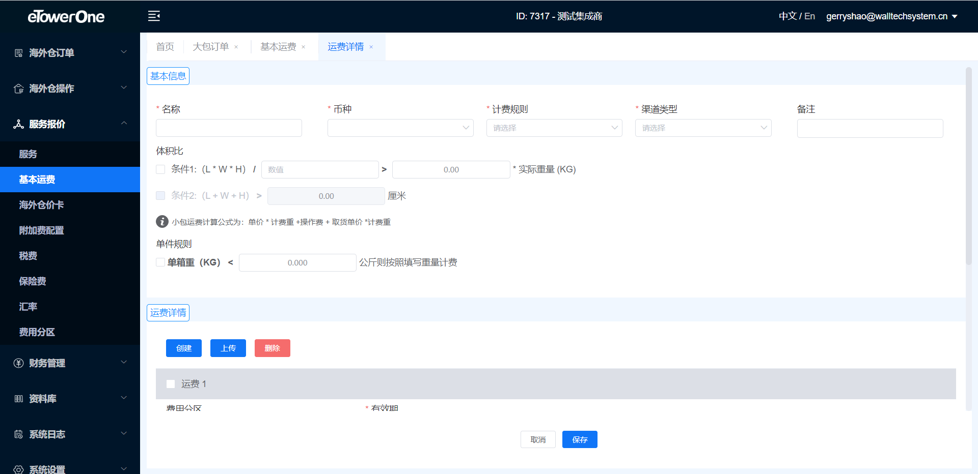 币种:可自定义设置,最终将转换为钱包的币种扣费。比如海外仓配置的币种是USD,价卡配置的币种是CNY,系统会按照计算公式先算出CNY的费用,再用当天的汇率转换为USD从发货人的钱包中扣去